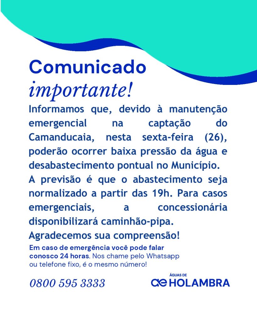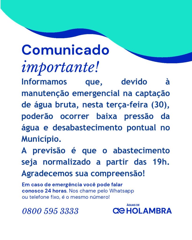 A intervenção faz parte do compromisso da concessionária com a segurança hídrica da cidade. Com planejamento e uso de tecnologia, a Águas de Holambra atua para manter o sistema operando de forma estável, oferecendo regularidade e qualidade no fornecimento de água à população.