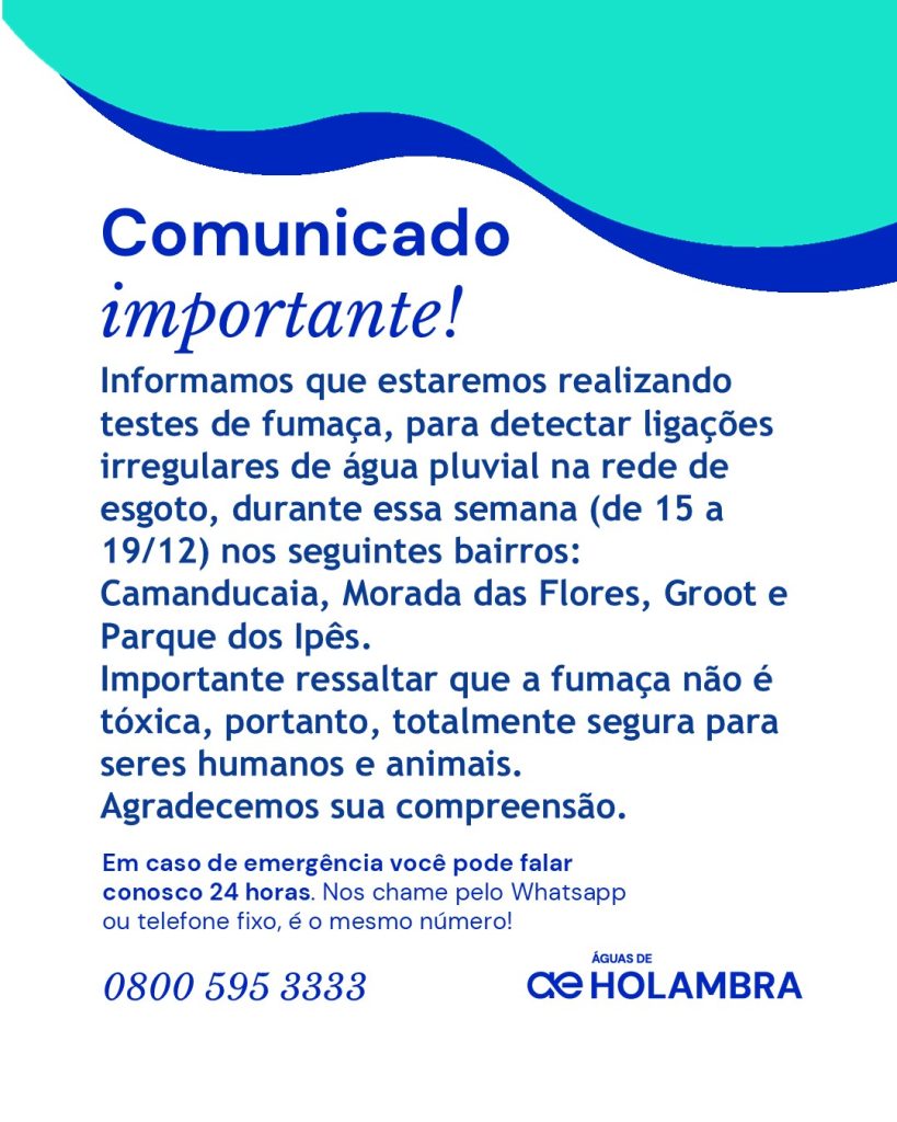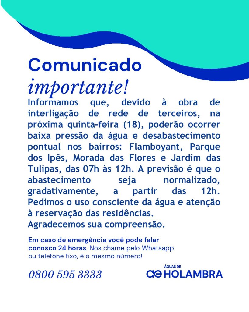 “Esses investimentos são fundamentais para garantir mais segurança hídrica e qualidade no abastecimento de água em Holambra. A Prefeitura segue acompanhando de perto as ações da concessionária, sempre com o compromisso de assegurar que os serviços prestados atendam às necessidades e ao bem-estar da população”, destacou o prefeito Fernando Capato.