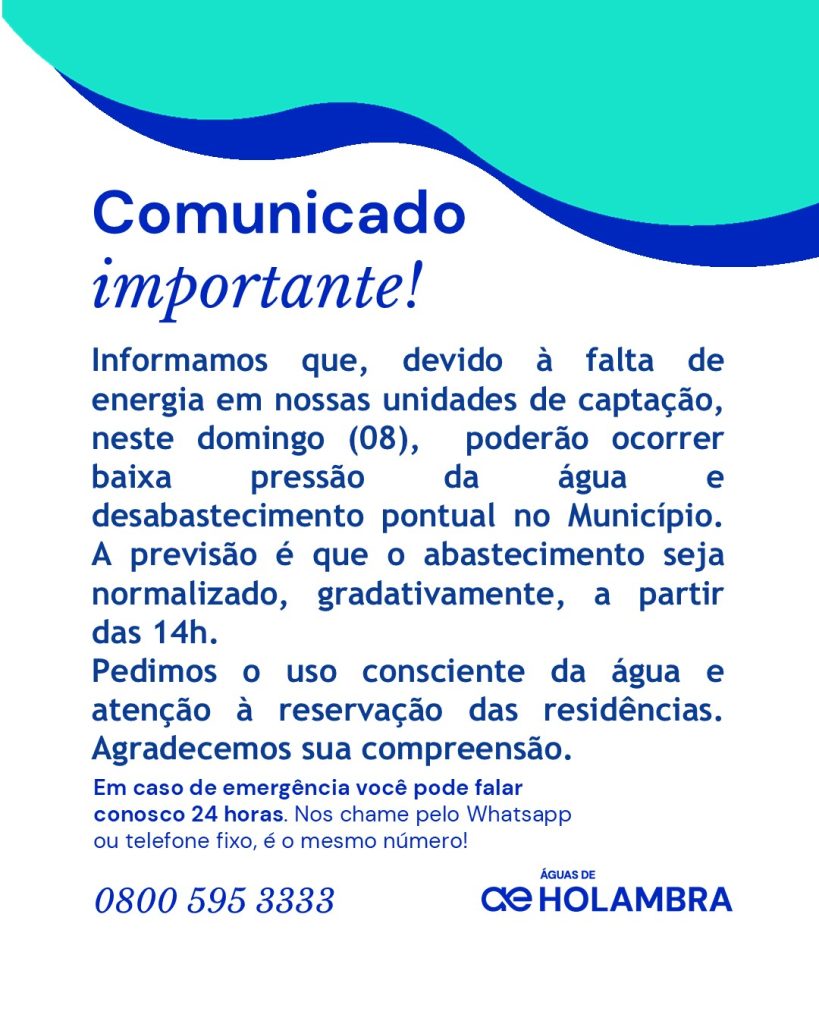 “Nossa equipe atua diariamente para assegurar a prestação de um serviço de qualidade para toda a população. Além das ações operacionais, é feito um trabalho contínuo de conscientização sobre o uso adequado da rede durante todo o ano. O Plano Águas de Verão é um complemento fundamental deste trabalho. Embora nossas redes operem em plena eficiência, a participação de cada cidadão é indispensável para mantermos o equilíbrio do sistema”, explica Daniel Mantovani, diretor-presidente da Águas de Holambra.